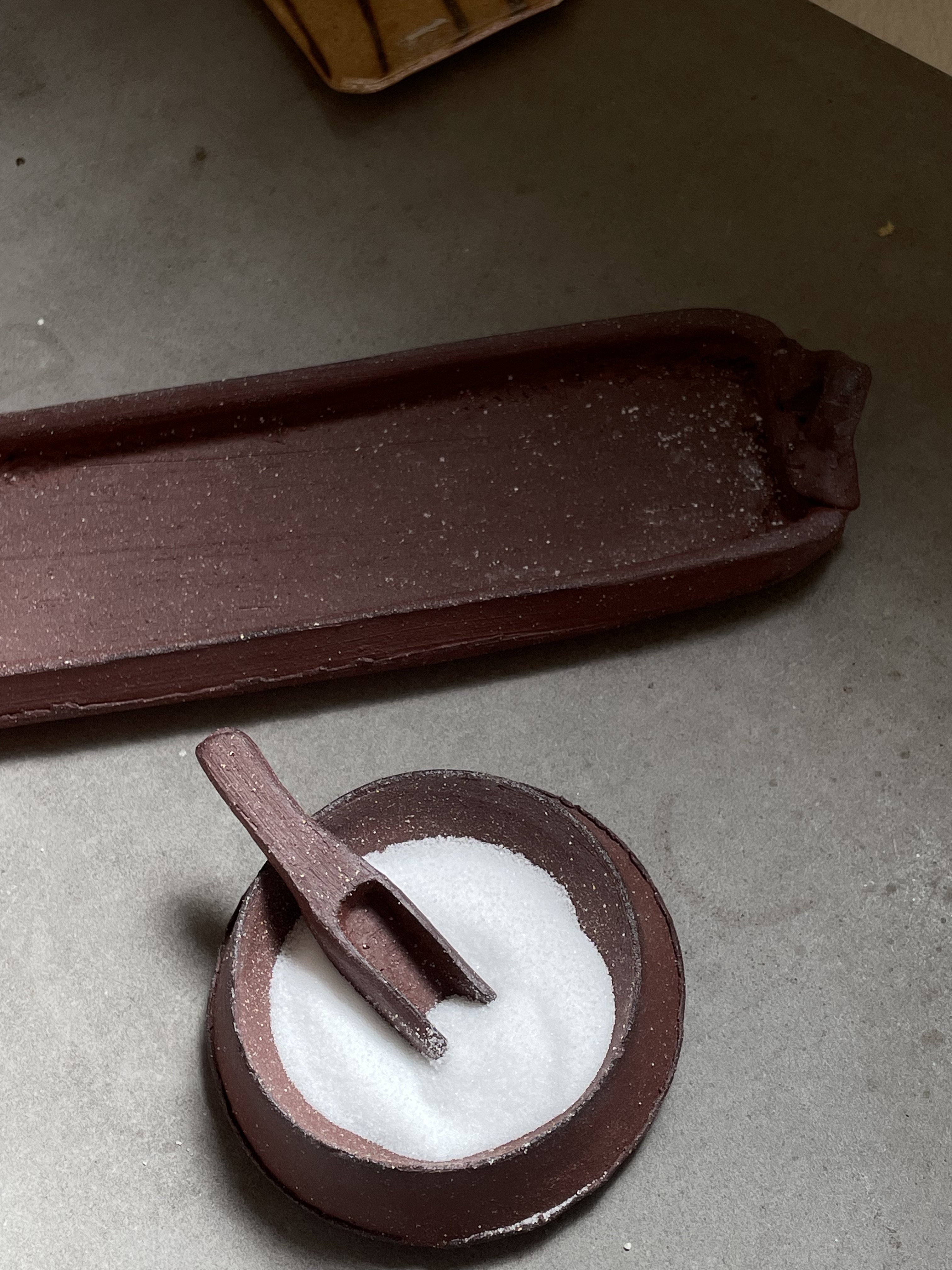 The clay has a tendency to burn out to an even darker purple / black on the exposed edges, giving it such a cool depth which I am really in to. The additions to the clay body to get the rich purple was (As a percentage of the mixed weight of the clay body):
