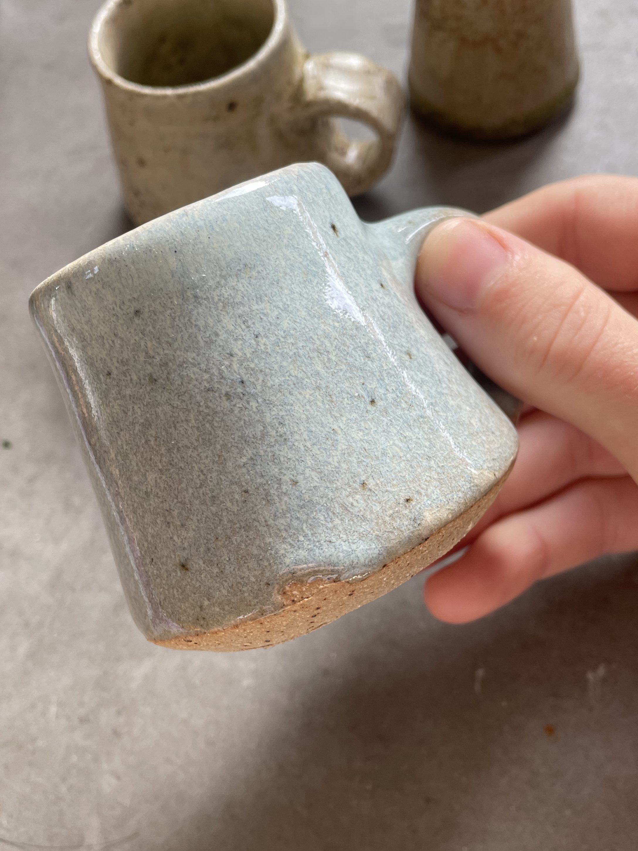 The Kawai Celadon fires to a austere grey blue, typical of some if the great Korean works. But when 10% ash is added it fires to a vibrant and lively sky blue with a great depth and luminescence. Neither glaze is ‘better’ than the other, just different, and both very charming in their own way.