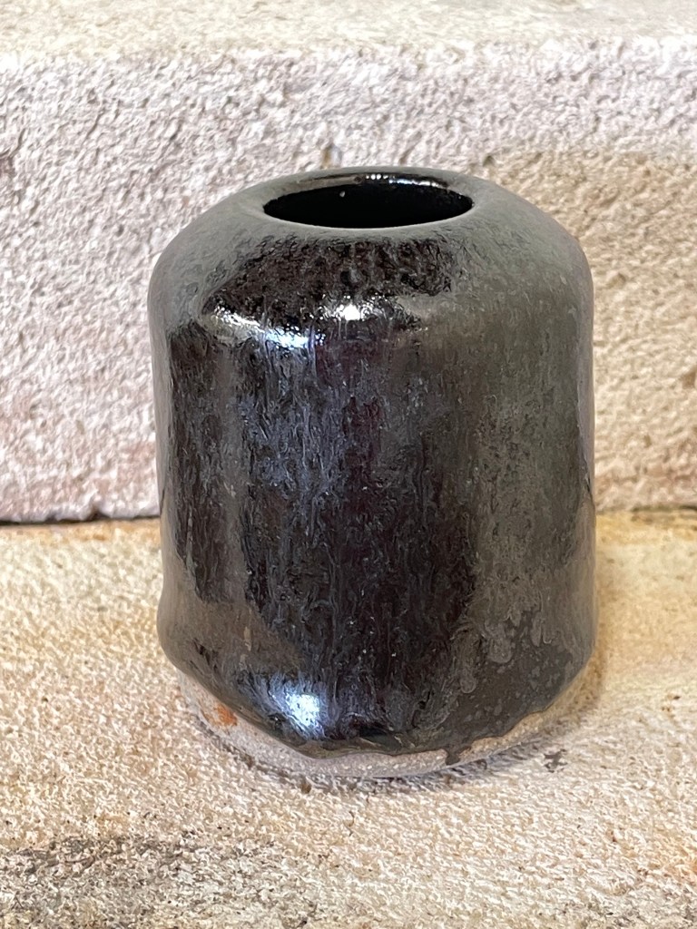 One other area in which ash seemed to provide some interesting results was in oilspot and iridescent glazes, though that is for another time. As an example, look at the inky quality brought out by ash in this recipe