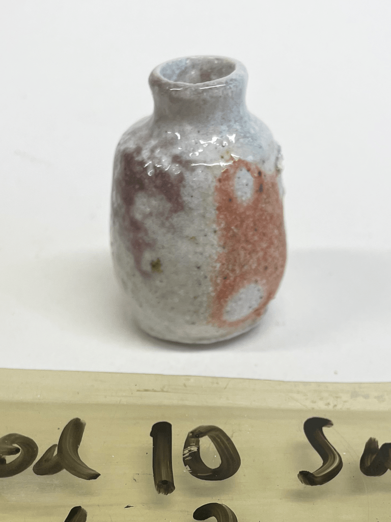 On reading Gail’s book, and understanding a bit better the role of the ratio between silica and alumina in clay body composition when it comes to response to soda, I discovered something surprising. By pure chance that slip that I made in to a pot contained the exact ratio that Gail singled out as being a contributor to her surfaces. This coincidence was all I needed to motivate the doubling down of my time on soda firing, and set me off on the pursuit of controlling the results across different firings.